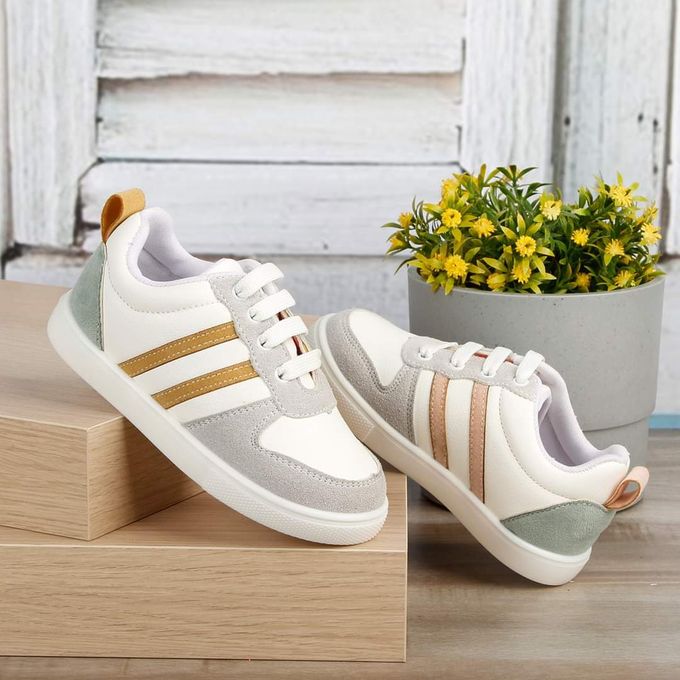 Flat Sneaker Shoes Casual For Kids White&Yellow