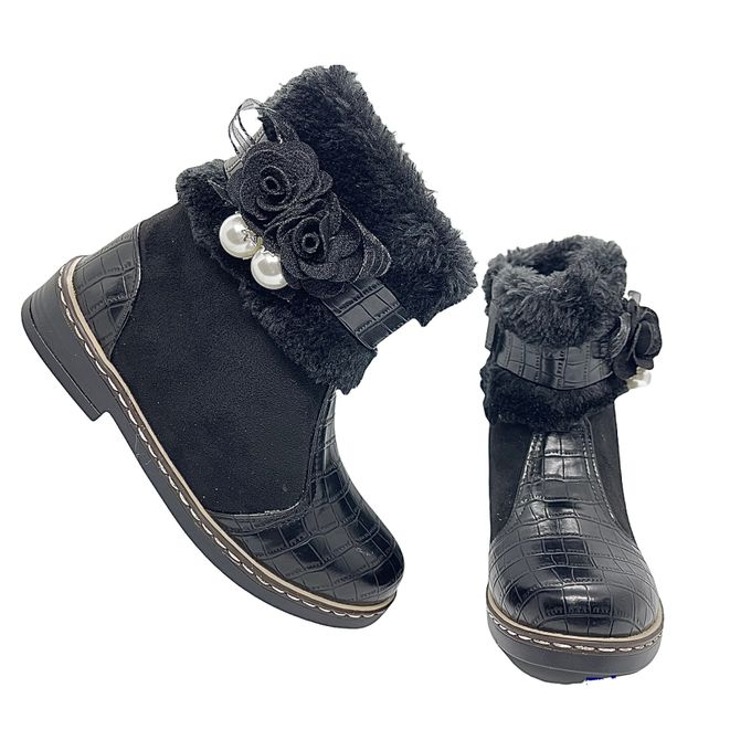 Ghils Winter Tights Legging For Girls Lycra Padded Fur Black