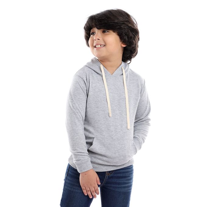 Kady Boys Cotton Hoodie With Kangroo Pocket Light Grey